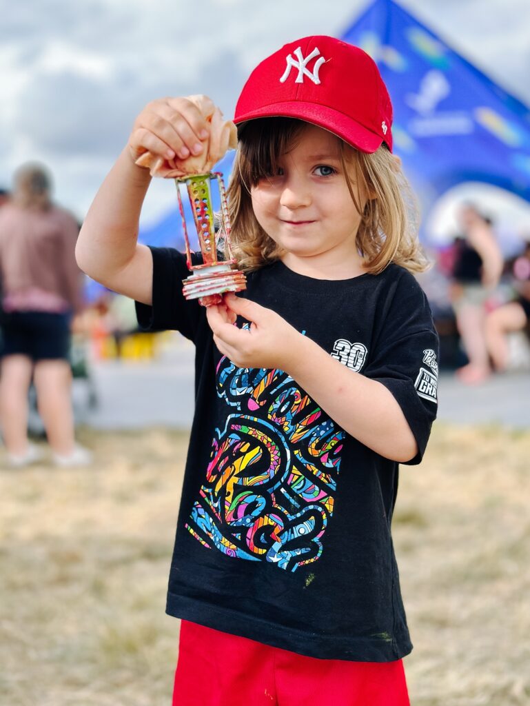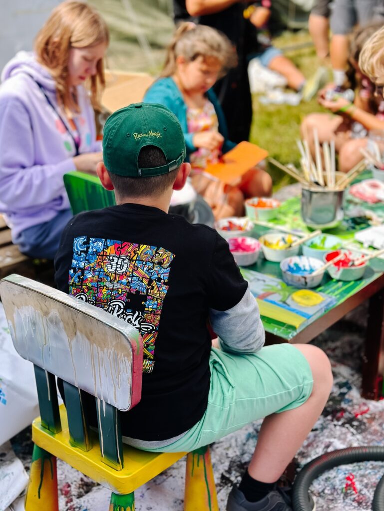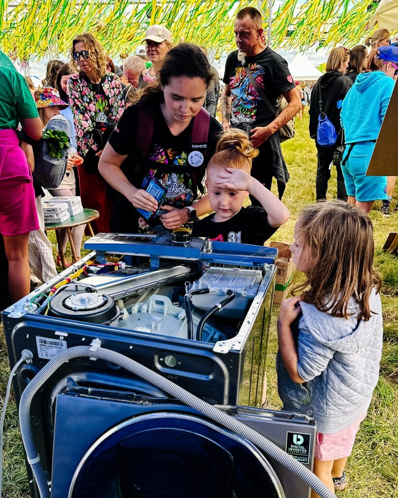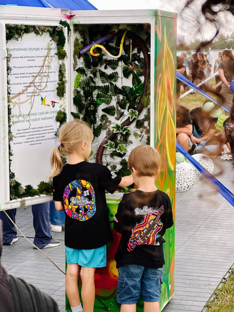 Stworzyliśmy „rzekę części”, w której można było wyławiać elektrośmieci i przekonać się, ile cennych surowców trafia do odpadów. Z odpadów powstała też festiwalowa palma – nie tylko symbol kreatywności, ale i… stacja ładująca. A na festiwalu, gdzie dostęp do kontaktu to prawdziwe złoto, była to jedna z najbardziej obleganych atrakcji.