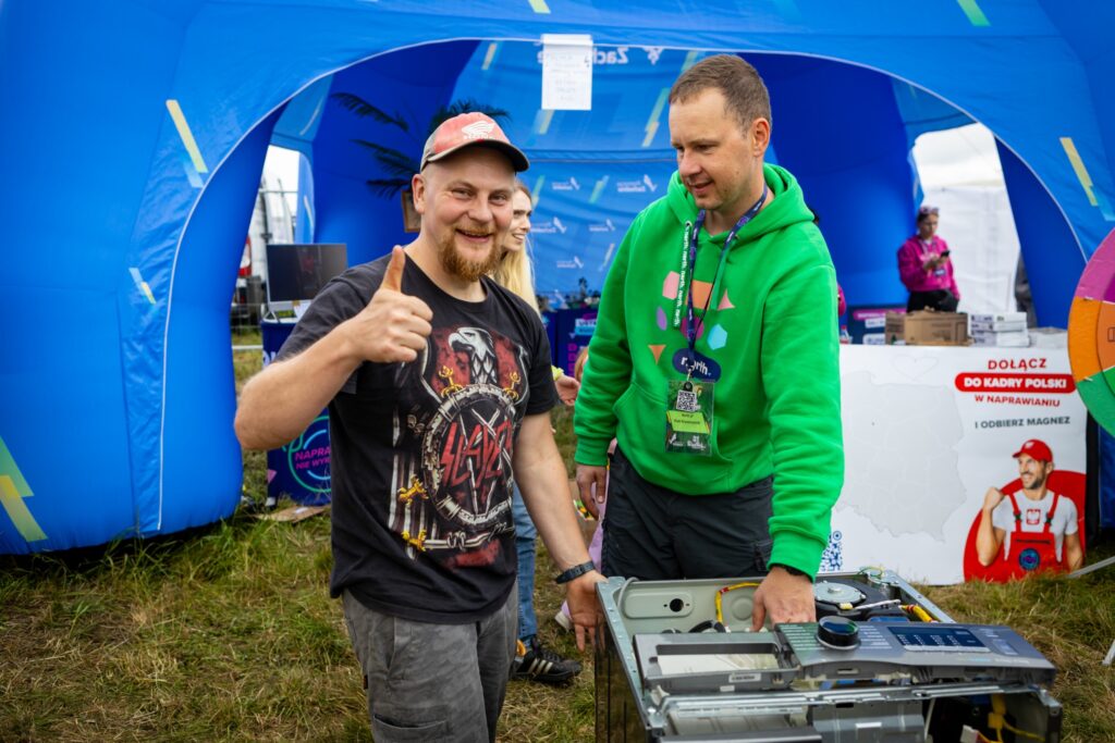 Do tego ścianka do zdjęć, stanowisko do tworzenia pamiątkowych magnesów ze swoim zdjęciem oraz – co dla nas szczególnie ważne – rekrutacja i integracja kadry naprawiaczy z całej Polski. Budujemy społeczność ludzi, którzy wierzą, że naprawa ma sens.